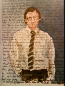 Last year, Robin wrote love-letter-paintings to many, if not all, of the Torrey faculty, these people who represented to her smart stuff and even so. Her friend Renee painted likenesses, and then Robin wrote the words over the painted image. Here is what she wrote on mine: